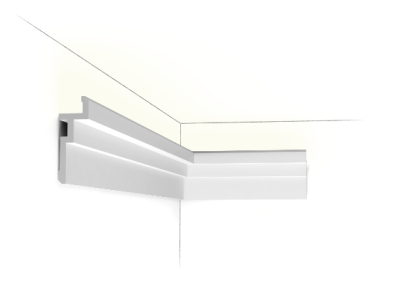Remarque concernant l'installation : utilisez une bande d'aluminium à l'intérieur du profilé ou un support de LED en aluminium pour éviter que la lumière ne transparaisse à travers la moulure. Dans certains cas, nous recommandons d'appliquer une couche supplémentaire de peinture noire à l'intérieur du profilé.