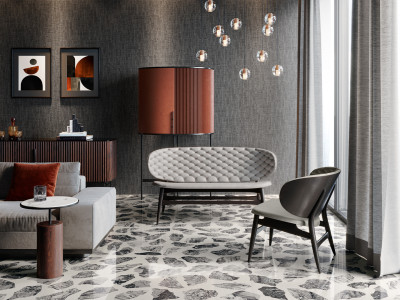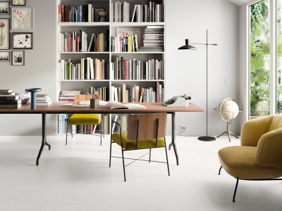 L'inspiration part des sols en résine appliqués manuellement, pour évoluer vers un projet sophistiqué et complexe en grès cérame de très haute qualité, où les fonds unis sont flanqués de modules décoratifs qui en élargissent le champ d'application et la capacité d'interpréter différentes ambiances stylistiques. La perception visuelle du matériau est chromatiquement compacte, mais suggère une âme chaleureuse et organique. La surface est traversée de traces délicates mais tangibles d'une habile dextérité.