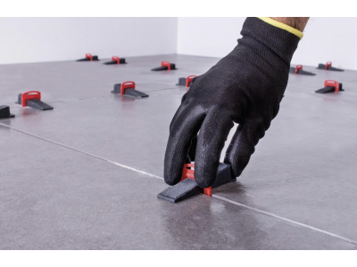 Le système de nivellement DELTA LS empêche également le déplacement des carreaux lors de la pose de l'adhésif et, lors de la pose, le nombre de corrections apportées à la position du carreau de céramique est réduit.