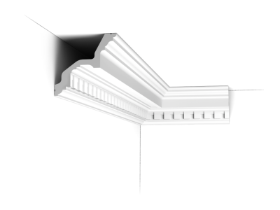 Une corniche majestueuse inspirée de l'architecture classique. Ce design pourvu de motifs dentelés donne un petit plus à votre intérieur. Jetez également un coup d'œil à la C422 ou combinez la corniche avec la C305 pour encore plus de grandeur.