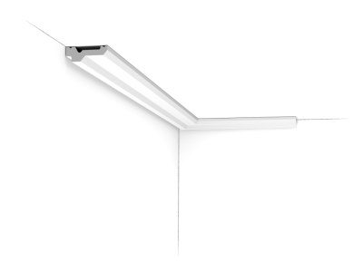 Une corniche fine, plate et intemporelle avec une ligne d'ombre à l'arrière. Conception par Jacques Vergracht.